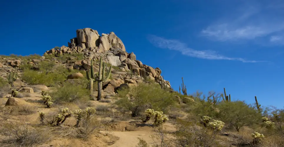Tom’s Thumb Trail is known for its challenging and rocky terrain. The 4.2-mile round trip trail offers hikers stunning views of the McDowell Mountains and the Sonoran Desert. The trail gains over 1,200 feet in elevation, making it a challenging hike suitable for experienced hikers. One of the main reasons people love hiking Tom’s Thumb Trail is the breathtaking views from the summit of Tom’s Thumb, a rock formation that reaches a height of 3,573 feet.