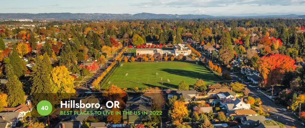 Hillsboro is a best place to live in Oregon for young adults & singles. The city has a population of 101,637 and the median age is 34 years old. Hillsboro is a part of the Portland metropolitan area and is located just west of Portland. The city is home to Intel, Nike, and SolarWorld USA.